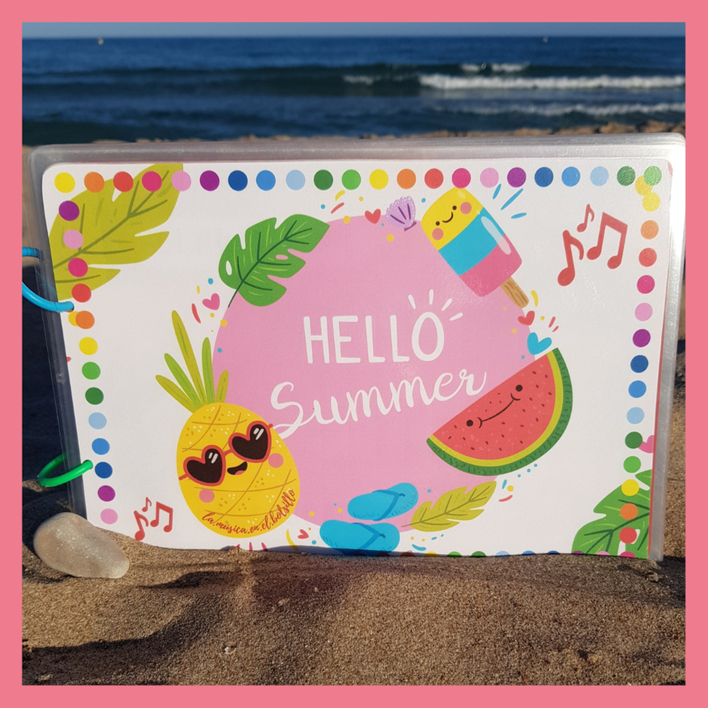 Libro manipulativo con temática veraniega, para un final de curso divertido. Pensado para repasar los conceptos del lenguaje musical más importantes (Clave de Sol, signos básicos de la partitura, figuras y silencios musicales con su correspondiente duración, compases binario, ternario y cuaternario, escala musical, notas musicales,...)
